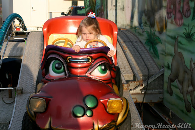 We started off with a ride. This was probably a bad choice. As you can see by her face, she didn't care for this ride very much but she did what I asked (not stand up) and she didn't even cry (although she came pretty close). Luckily, she recovered quickly from this and I don't think we traumatized her (she even told me she like it a few minutes later).